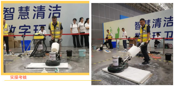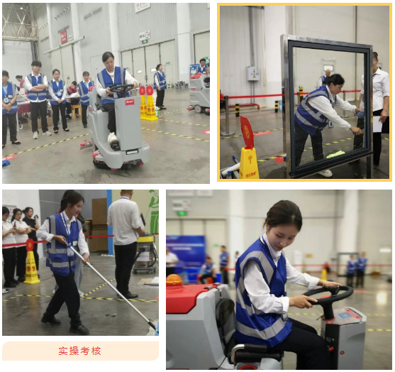 保潔組·蔣蘭蘭 & 羅瑩: 在緊張的理論考核后,兩位選手在玻璃清潔、塵推使用等多個保潔實操項目中動作規范、流程*,更在《洗地機一級保養及常見問題處理》的抽簽問答環節對答如流。其中,羅瑩憑借穩定發揮榮獲保潔組十佳,二人的專業素養均獲得了裁判的一致好評。